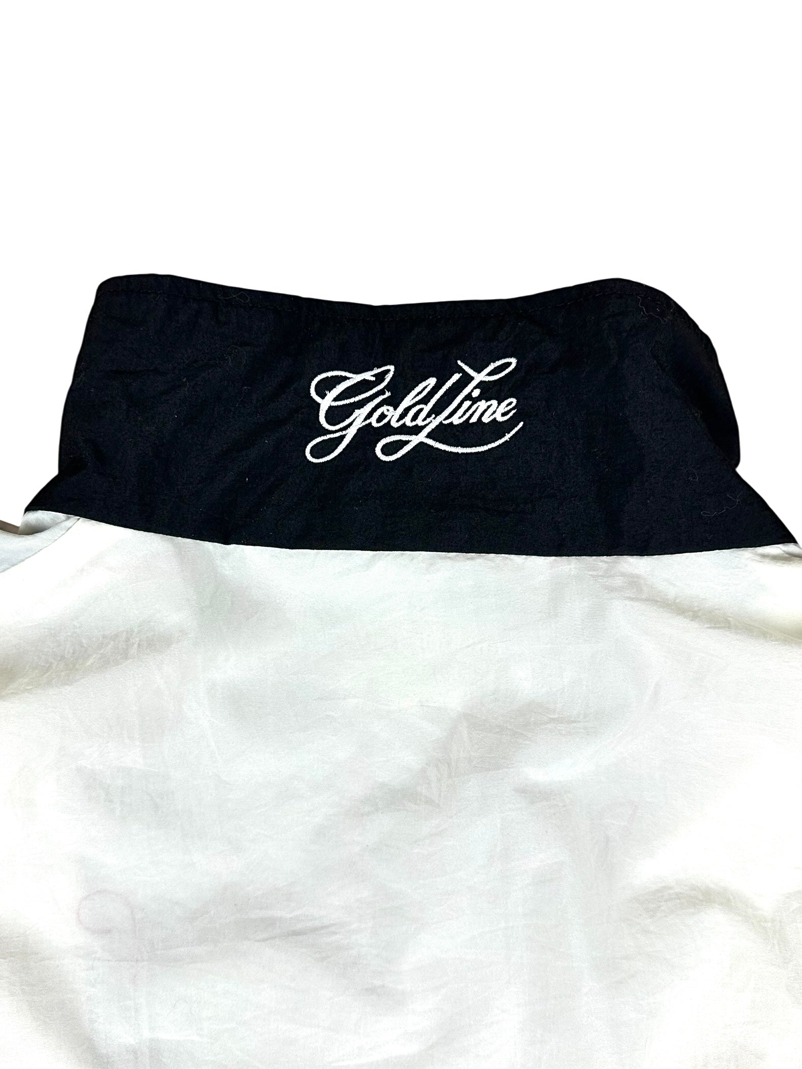 La giacca è dotata di una pratica chiusura a zip frontale, colletto a lupetto e due tasche laterali per il massimo della funzionalità. Con la scritta "Goldline" finemente ricamata sul retro del colletto, questo capo unisce l'artigianalità canadese a un design versatile, ideale per completare outfit casual dal gusto rétro.